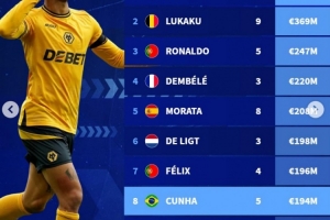 体育资讯6月2日讯 曼联官方宣布签下狼队前锋库尼亚,德转也盘点了足坛历史累计转会费最高的10名球员,具体如下:
